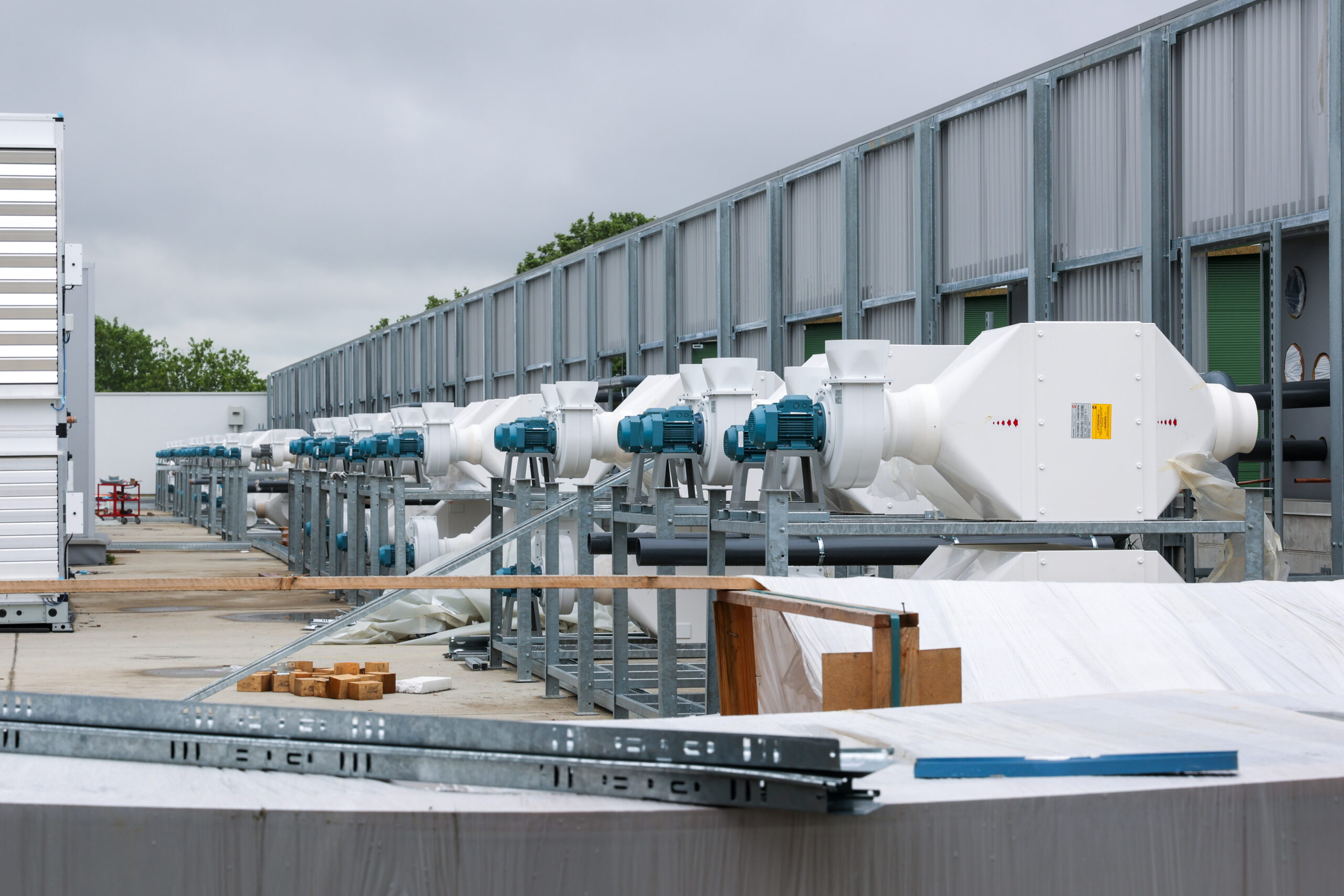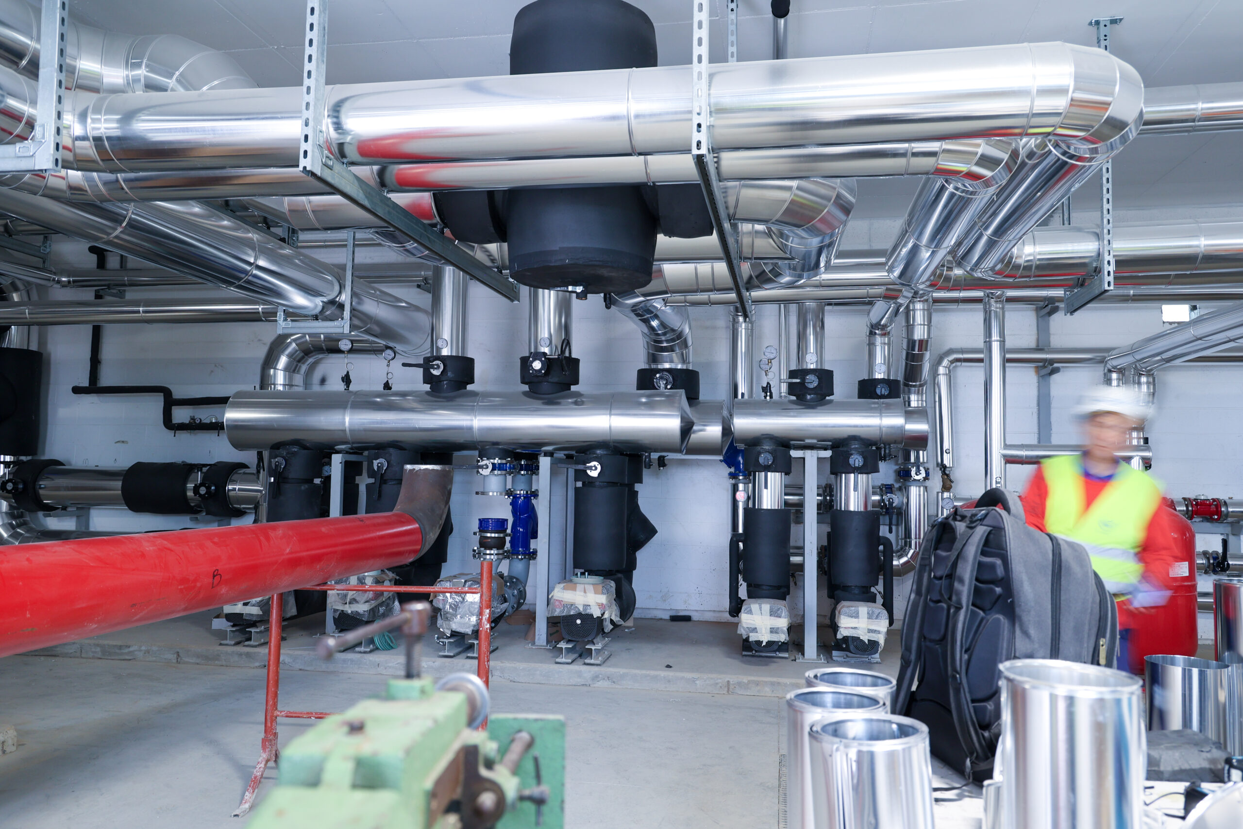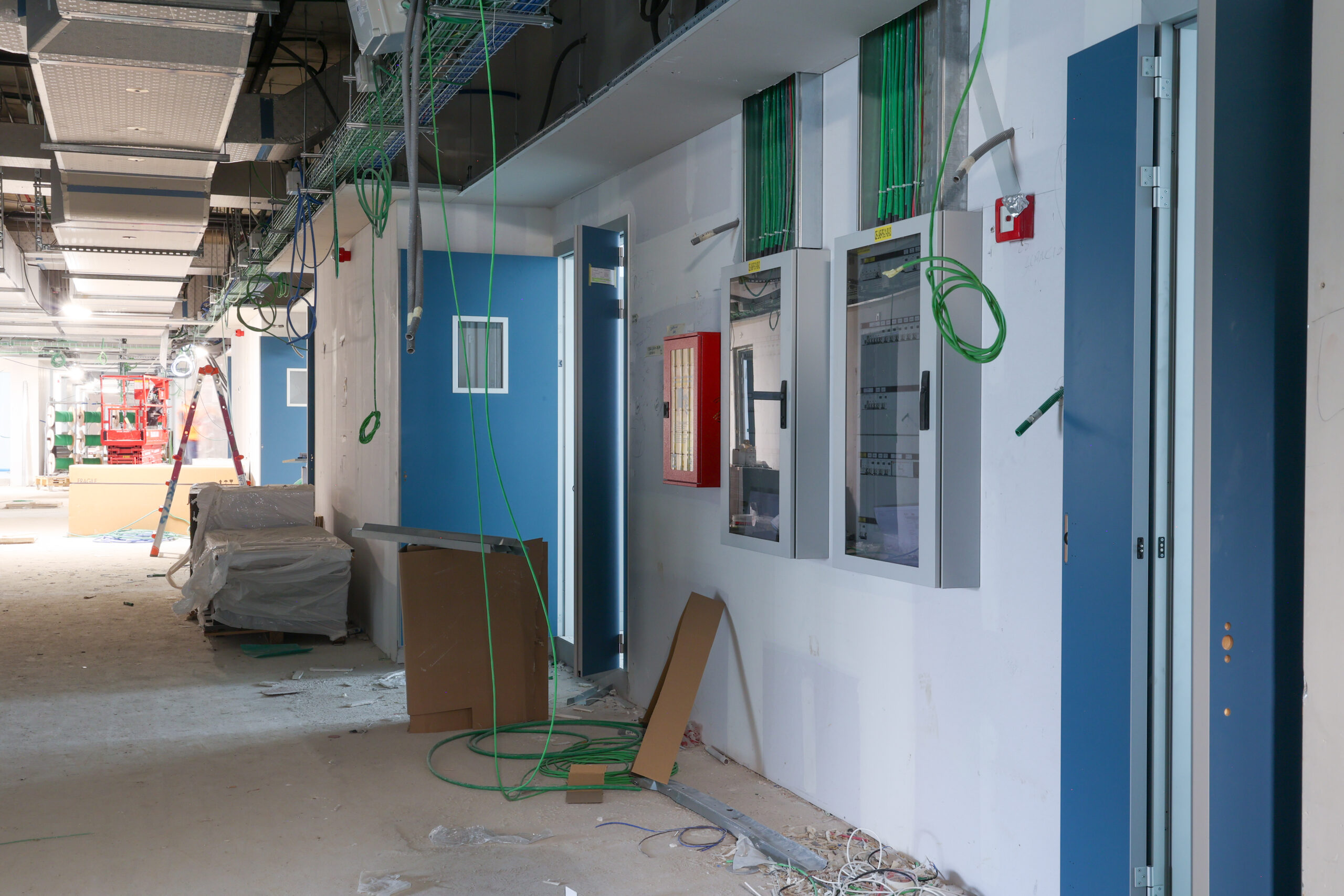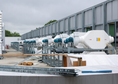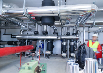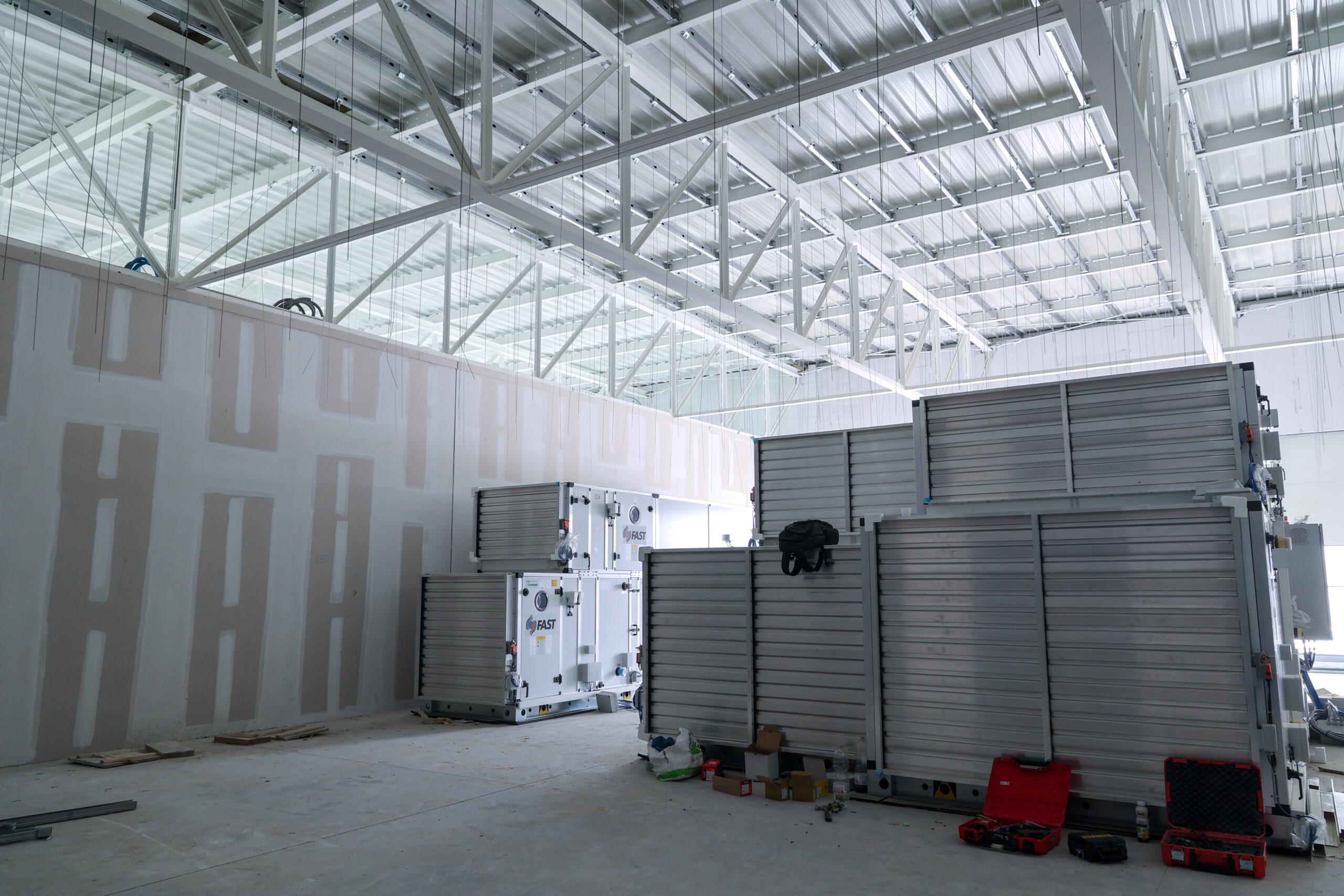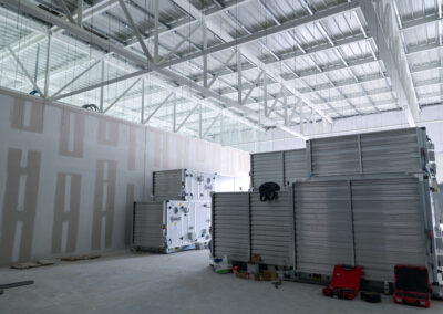 Centrale tecnologica: sono in fase di sviluppo i lavori impiantistici sia elettrici che meccanici e sono stati installati i pannelli fonoassorbenti.