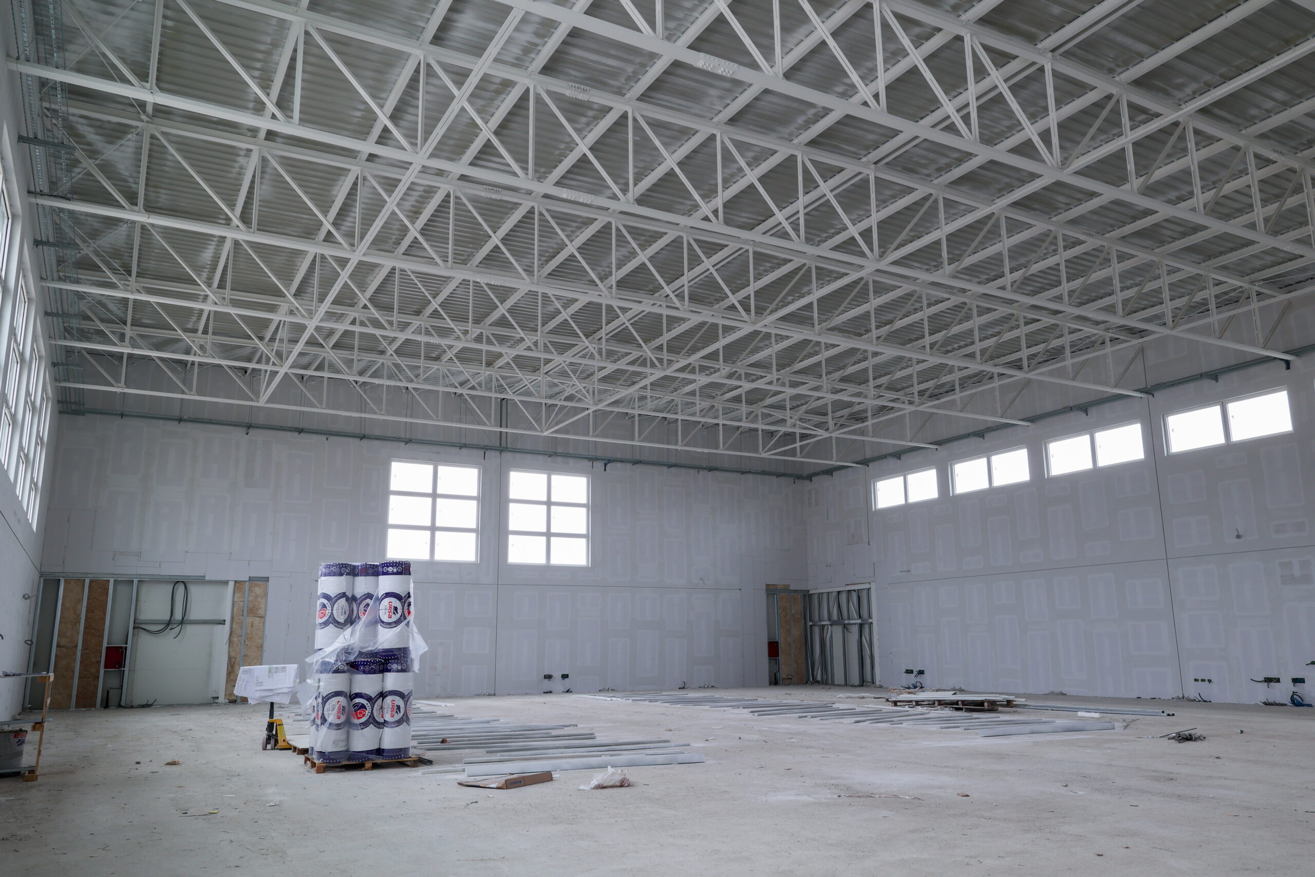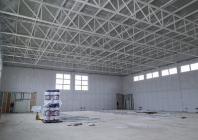 Centro sportivo, locale spogliatoi e pista di atletica: sono iniziati i montaggi delle pareti interne in cartongesso e sono iniziati i lavori impiantistici sia elettrici che meccanici , è iniziata la posa dei controsoffitti.