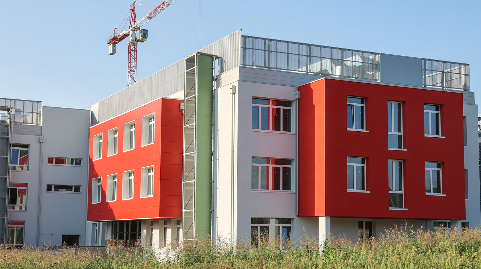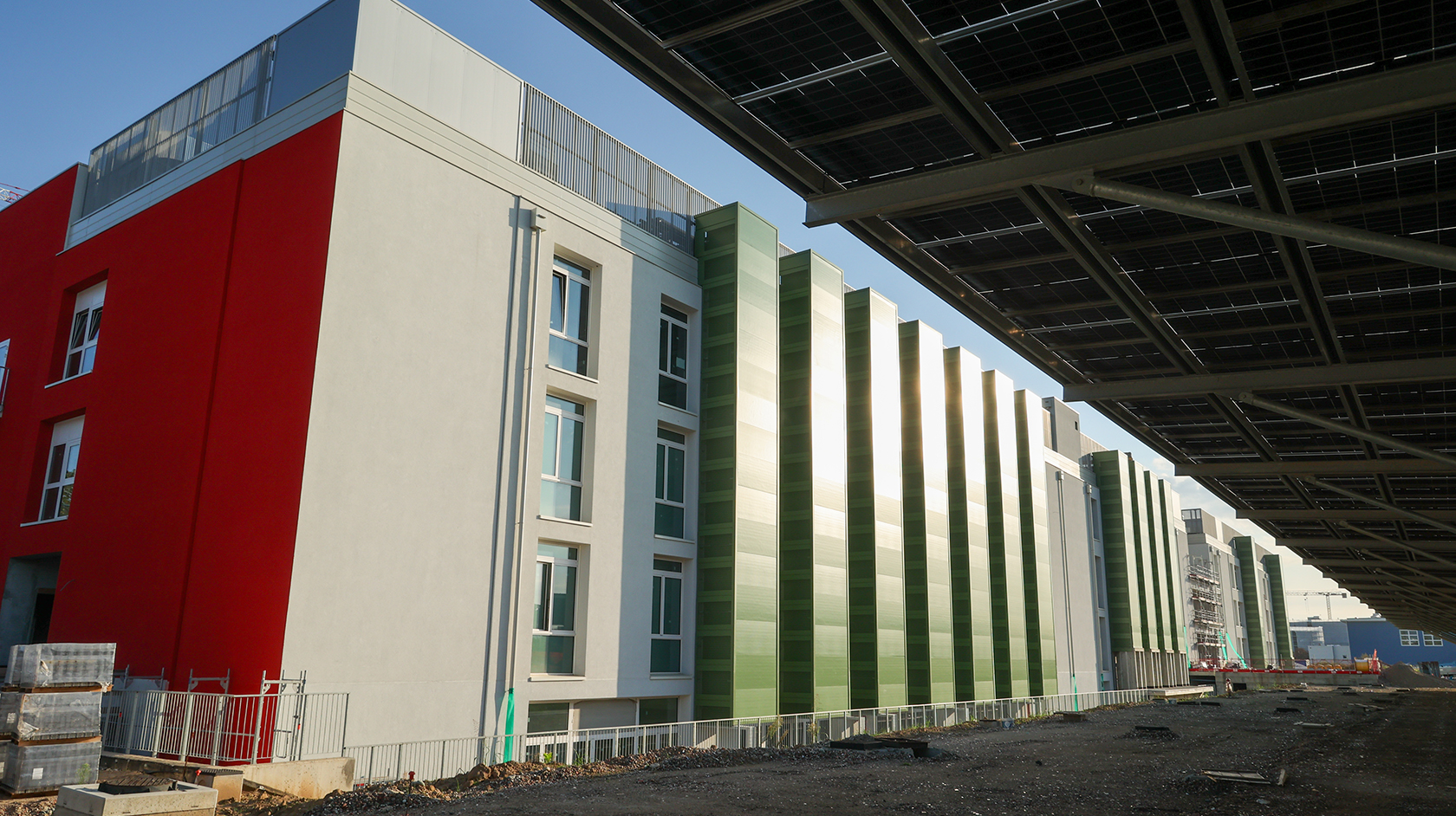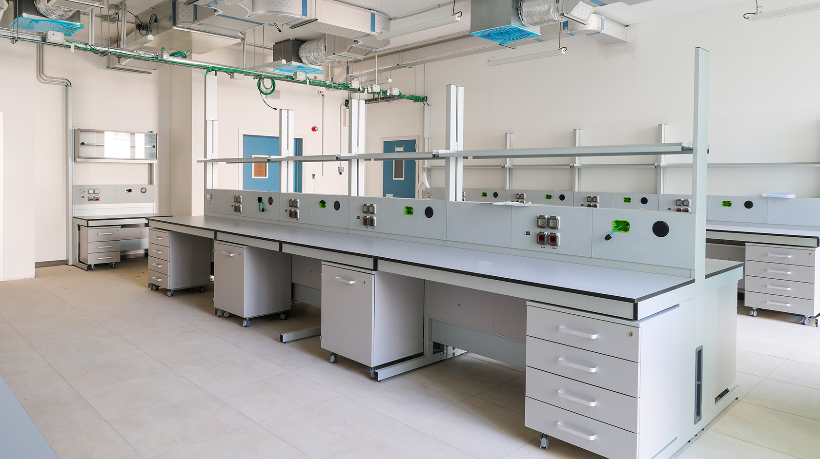 Edificio DR: sono iniziate le tinteggiature interne , sono in fase di sviluppo i lavori impiantistici meccanici ed elettrici a tutti i piani,  sono in fase di realizzazione i pavimenti, i rivestimenti dei bagni , l’installazione delle porte e sono in fase di montaggio gli arredi tecnici dei laboratori.