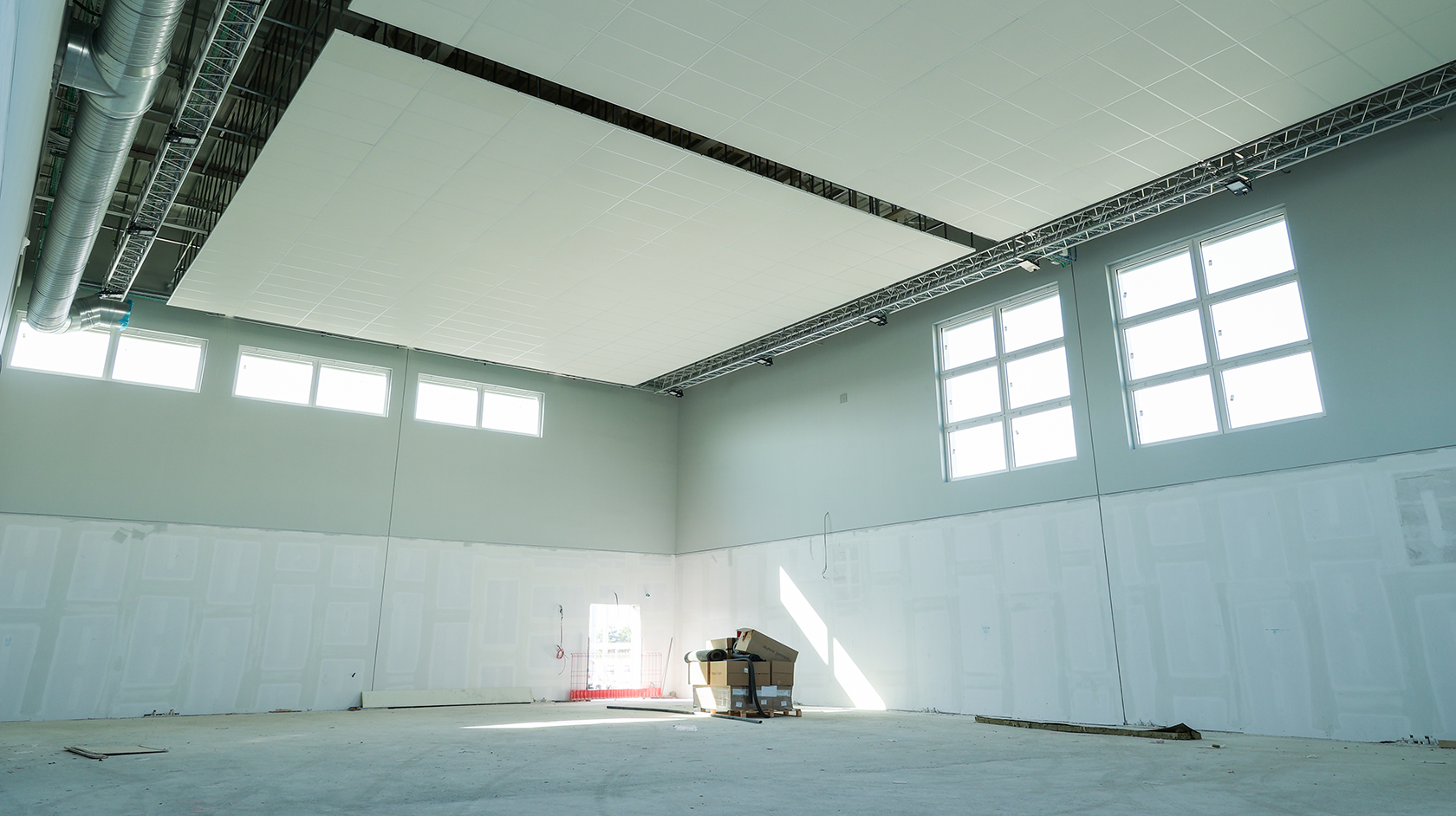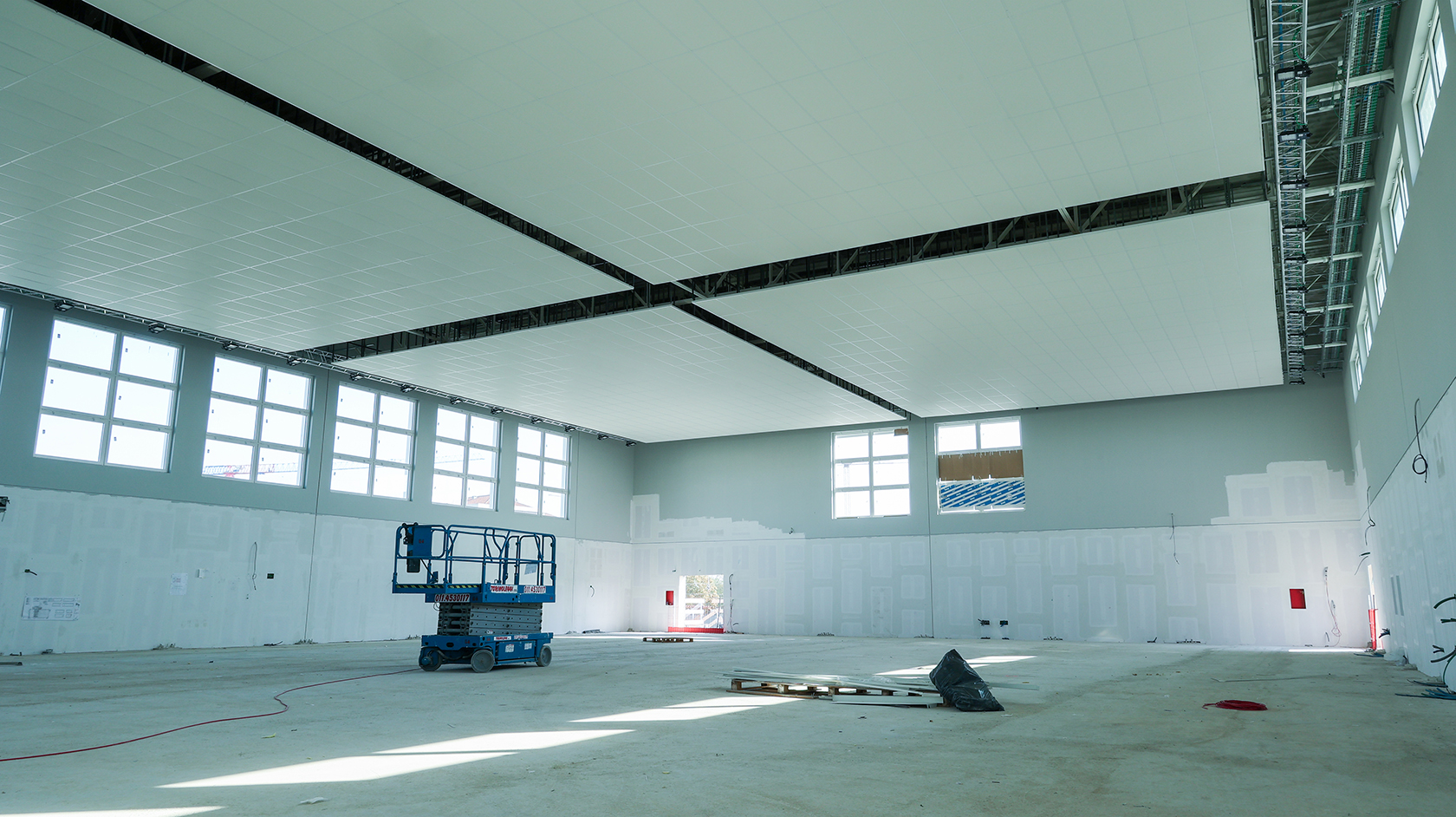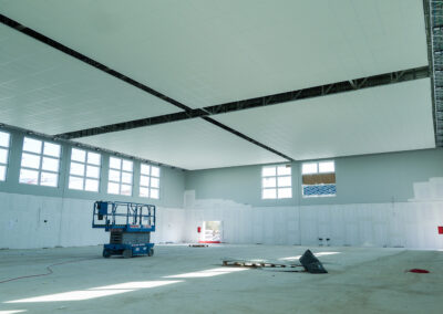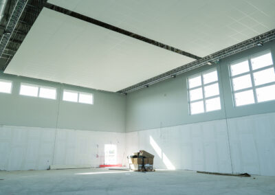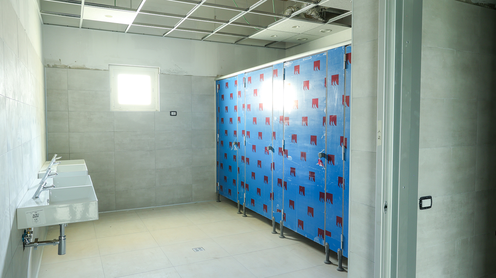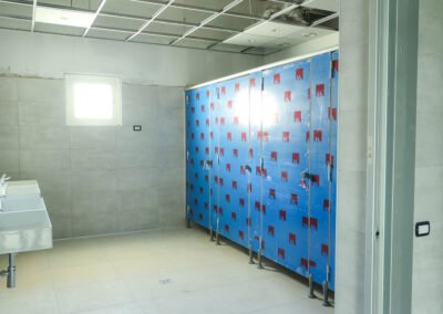 Centro sportivo, locale spogliatoi e pista di atletica: sono iniziati i montaggi delle pareti interne in cartongesso e sono iniziati i lavori impiantistici sia elettrici che meccanici , è iniziata la posa dei controsoffitti e dei serramenti interni e delle tende.